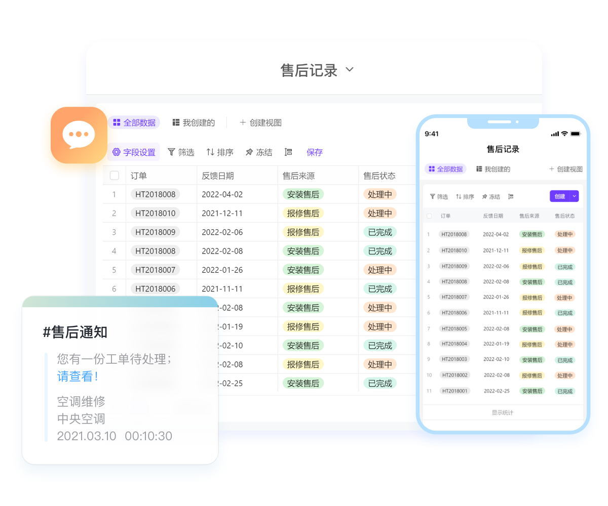 每一條售后信息記錄在系統(tǒng),不用開電腦,手機(jī)就可以查看